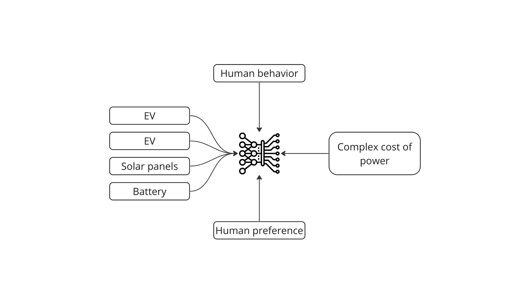 There are many variables: Many EVs (of varying sizes), varying EV chargers, the site's electrical constraints, on-site batteries, and on-site solar. Human behavior and human preference causes a great deal of uncertainty and complexity. Rate structures for calculating charging costs are complex and nonlinear.